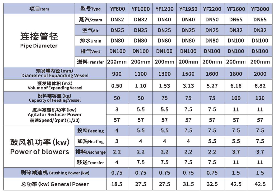 5.機(jī)器運(yùn)作中突然發(fā)生停止情況(如停電或機(jī)械發(fā)生嚴(yán)重問題)時(shí),蒸汽閥會(huì)立即自動(dòng)關(guān)閉,同時(shí)會(huì)自動(dòng)供應(yīng)空氣到發(fā)料爐內(nèi),以防止料在發(fā)料爐內(nèi)結(jié)塊,為產(chǎn)品的品質(zhì)提供雙重保障。